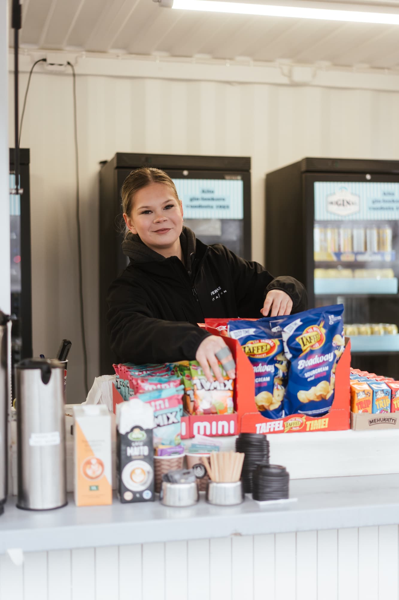 - Itäpäädyssä on lisäksi Juniorikioski, missä on ostettavissa karkkia, sipsiä, hodareita, makkaraa, limua ja pillimehuja.