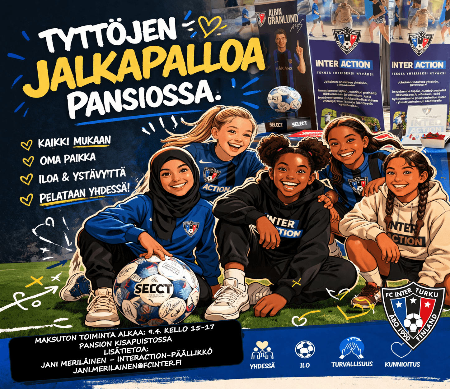 InterAction Pansio Girls -toiminta on suunnattu 9–12-vuotiaille tytöille. Toiminnan tavoitteena on tarjota turvallinen, esteetön ja kannustava mahdollisuus liikkua, kokeilla jalkapalloa ja löytää oma paikka harrastuksen parissa, ilman aikaisempaa kokemusta.